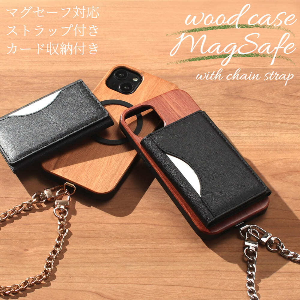 iphoneケース 木製 カード収納 iphone16 iphone15 iphone14 pro 13 12 マグセーフ対応 magsafe 3つ折り チェーン ストラップ ショート マグネット se3 se2 magsafe対応 ウッド 背面収納 大容量 アイフォン 16 15 14 SE カード入れ スタンド 13mini 落下防止 メンズ 送料無料