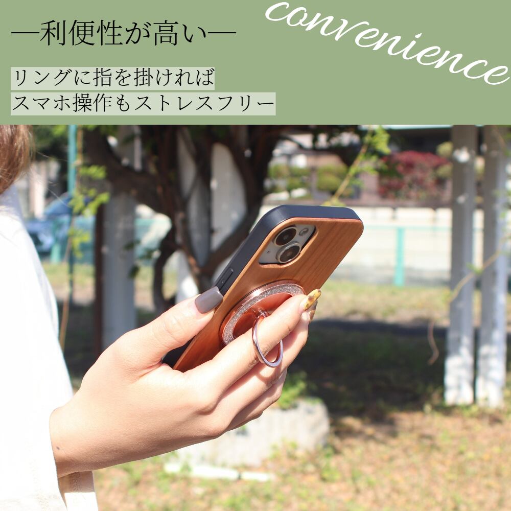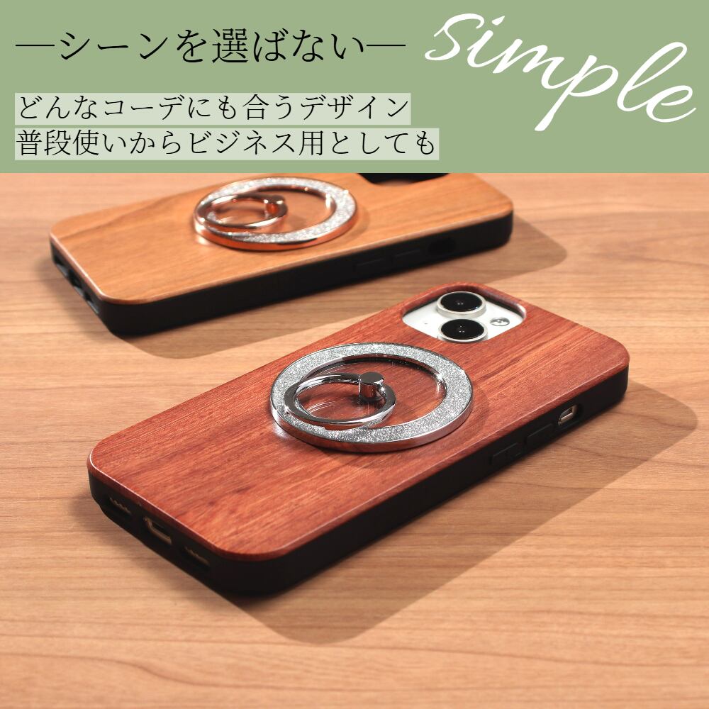 iphone ケース リング付き ウッド iphone17 iphone16 iphone15 iphone14 MagSafe マグセーフ対応 スマホリング アイフォン 17 16 15 14 13 12 SE 天然木 magsafe対応 マグセーフ きらきら ラメ スタンド 落下防止 17pro 16pro 13mini se3 マグネット レディース 送料無料