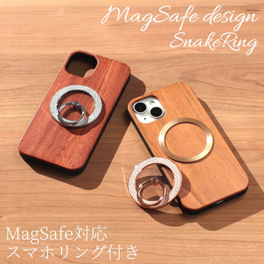 iphone ケース リング付き 木製 iphone17 iphone16 iphone15 iphone14 MagSafe マグセーフ対応 スマホリング アイフォン 17 16 15 14 13 12 SE 天然木 ウッド magsafe対応 マグセーフ ヘビ柄 スタンド 落下防止 薄型 17pro 16pro 13mini se3 マグネット メタリック 送料無料