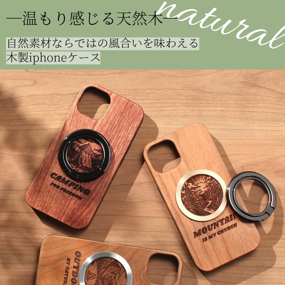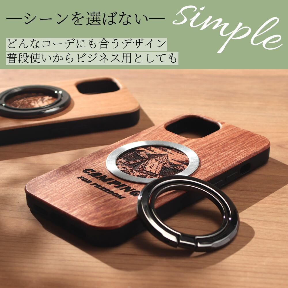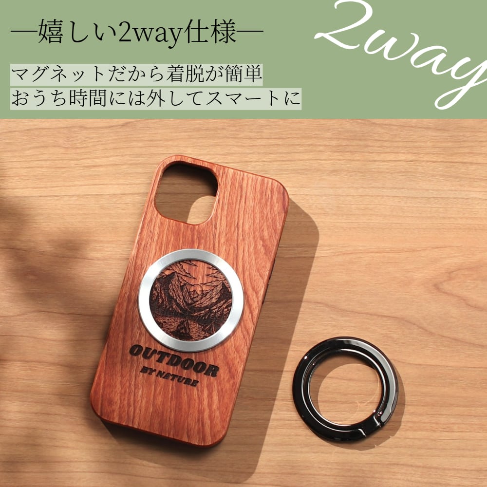 iphone ケース リング付き 木製 iphone17 iphone16 iphone15 iphone14 MagSafe マグセーフ対応 スマホリング アイフォン 17 16 15 14 13 12 SE 天然木 ウッド magsafe対応 マグセーフ スタンド 落下防止 薄型 17pro 16pro 13mini se3 マグネット メンズ メタリック 送料無料