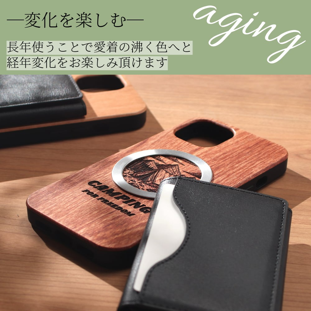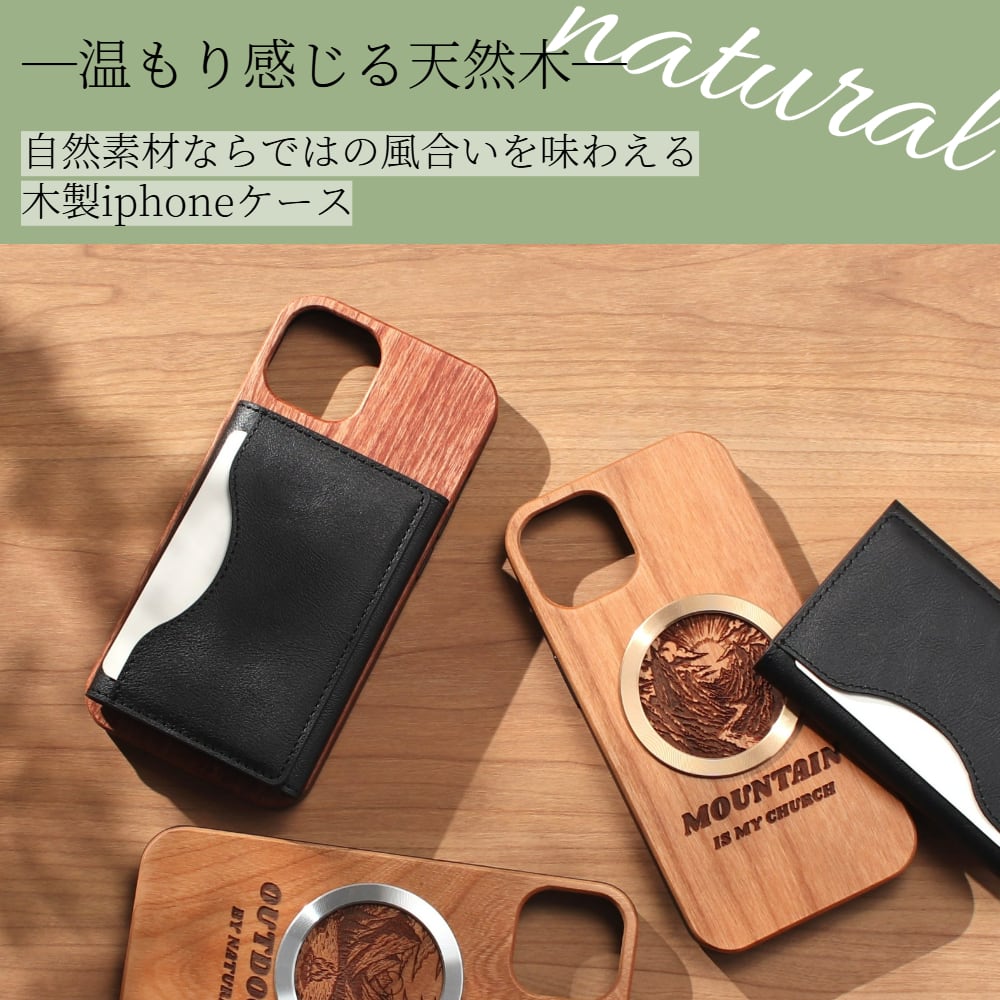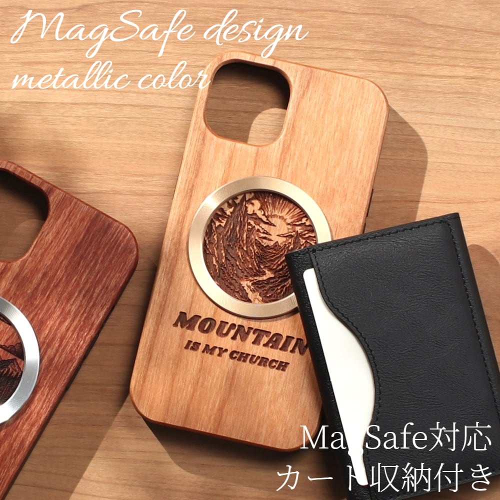 iphone ケース カード収納付き 木製 iphone17 iphone16 iphone15 iphone14 MagSafe マグセーフ対応 カード 背面収納 大容量 アイフォン 17 16 15 14 13 12 SE 天然木 ウッド magsafe対応 マグセーフ カード入れ 財布 17pro 16pro 13mini se3 マグネット メタリック 送料無料