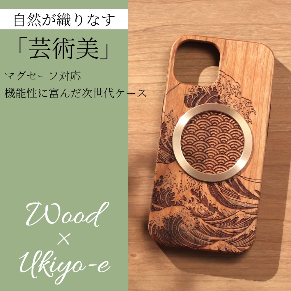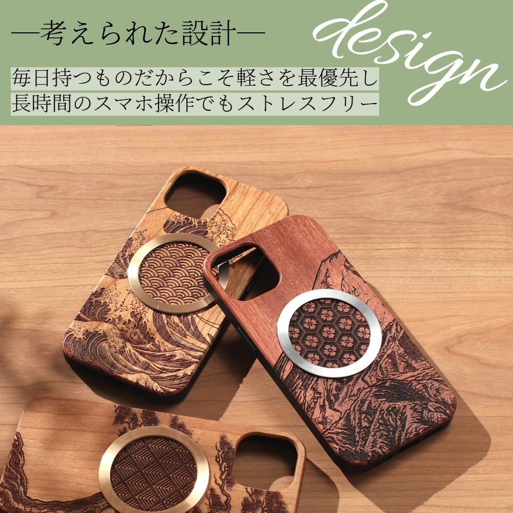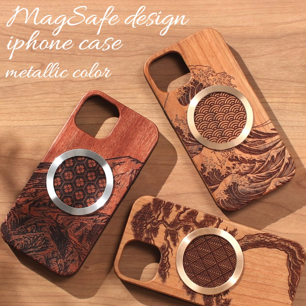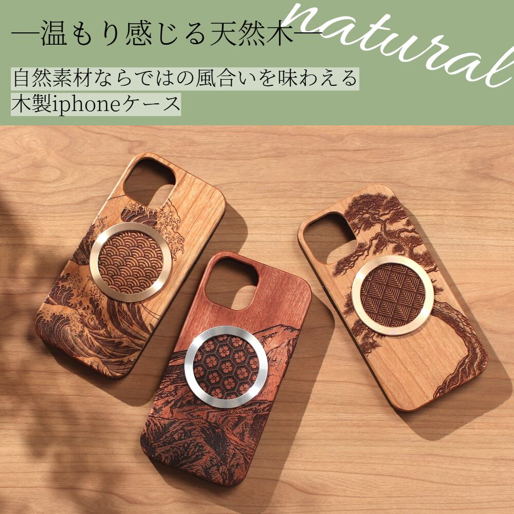 iphone ケース 木製 iphone17 iphone16 iphone15 iphone14 magsafe マグセーフ マグネット アイフォン 17 16 15 14 13 12 se スリム 軽量 天然木 ウッド 木製ケース 17pro 16pro 13mini se3 se2 浮世絵 和柄 日本 文様 iphoneケース magsafe対応 耐衝撃 メタリック 送料無料