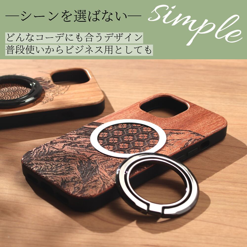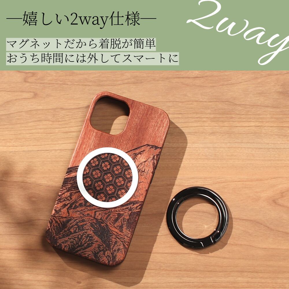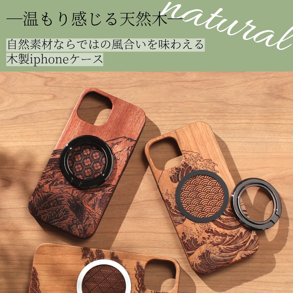 iphone ケース リング付き 木製 iphone17 iphone16 iphone15 iphone14 MagSafe マグセーフ対応 スマホリング アイフォン 17 16 15 14 13 12 SE 天然木 ウッド magsafe対応 マグセーフ スタンド 落下防止 薄型 17pro 16pro 13mini se3 マグネット 和柄 日本 文様 送料無料