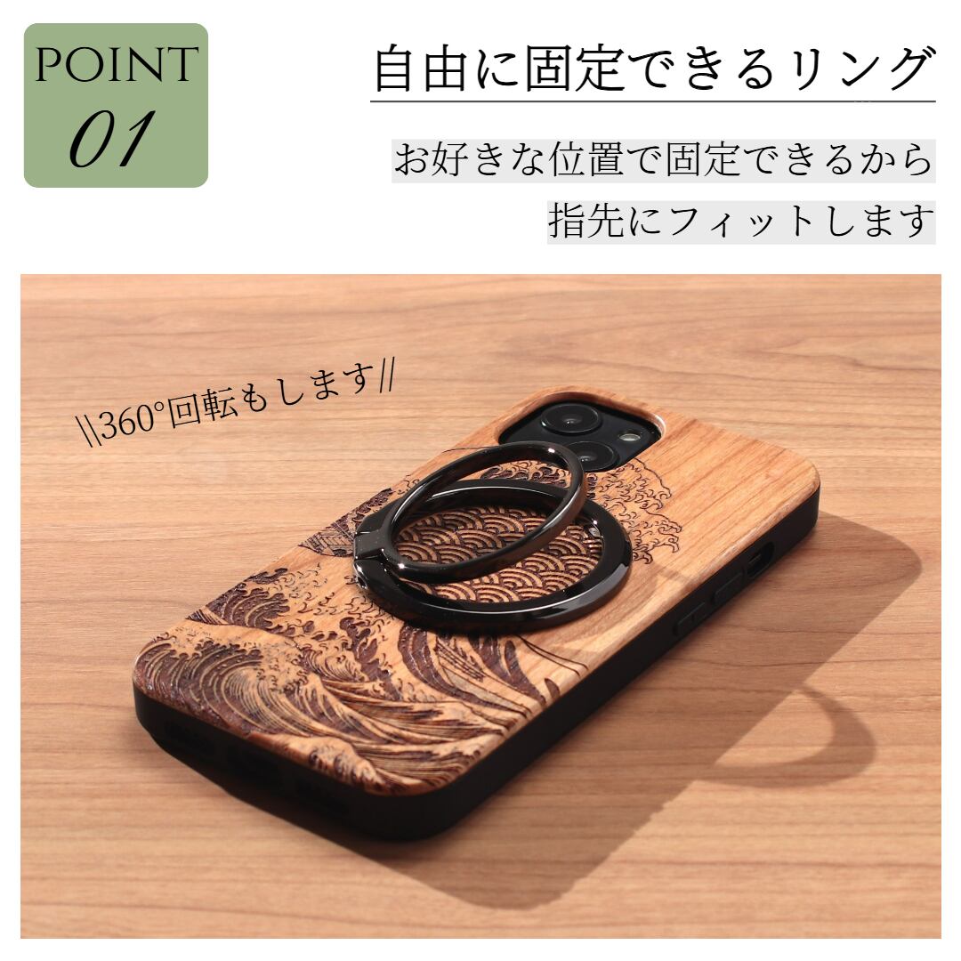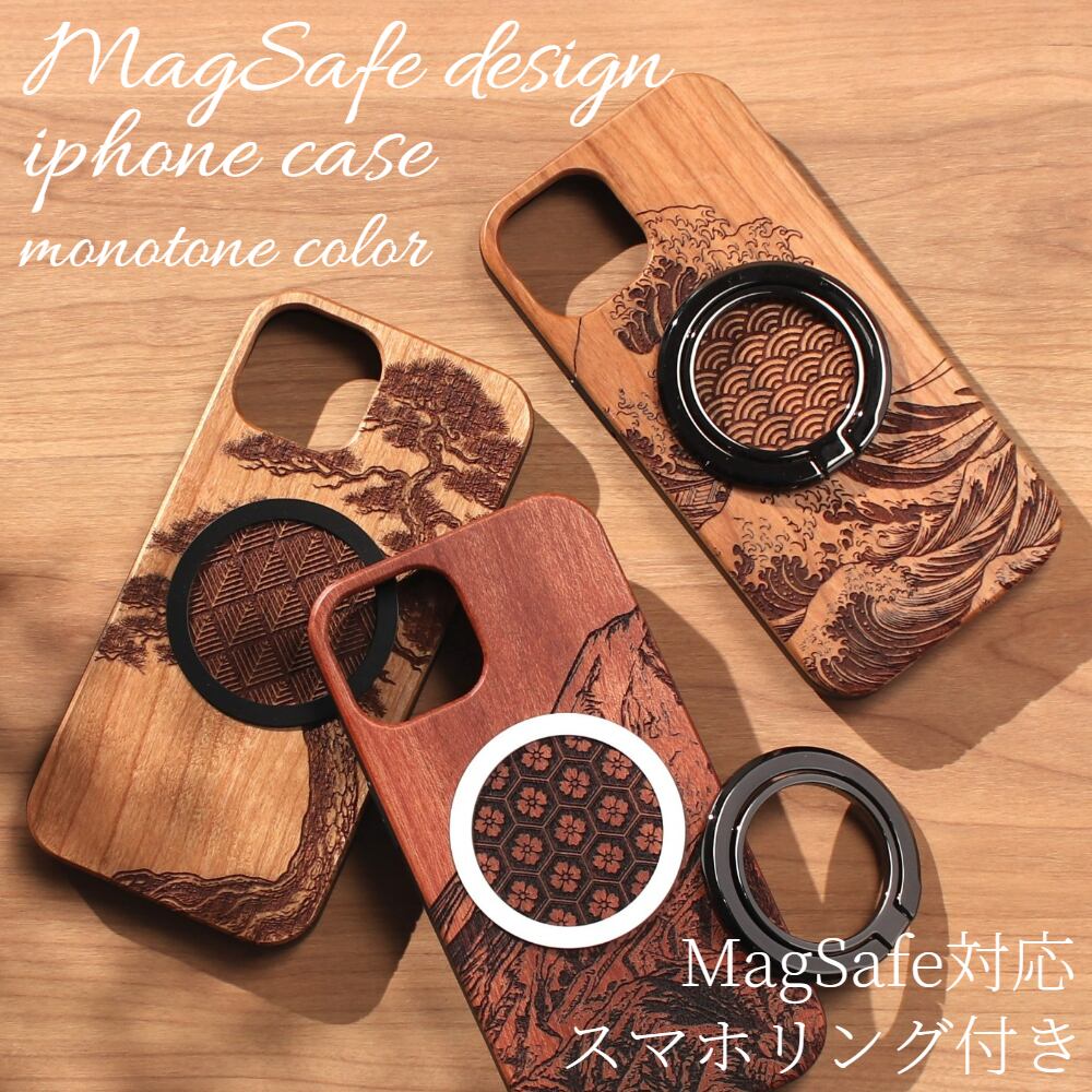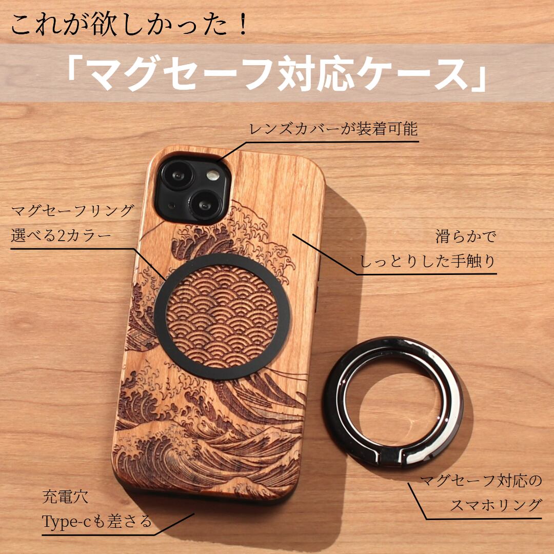iphone ケース リング付き 木製 iphone17 iphone16 iphone15 iphone14 MagSafe マグセーフ対応 スマホリング アイフォン 17 16 15 14 13 12 SE 天然木 ウッド magsafe対応 マグセーフ スタンド 落下防止 薄型 17pro 16pro 13mini se3 マグネット 和柄 日本 文様 送料無料